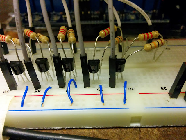 - 8x 2N222 NPN transistors (about $4 a dozen in RadioShack)